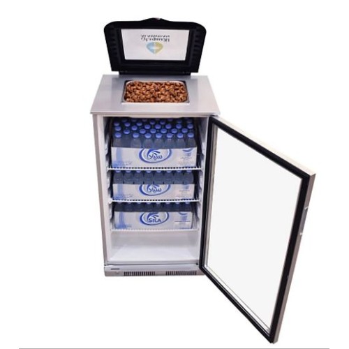 6-تستوعب في الخزان السفلي 3كراتين ماء يتم وضعها بالكرتون من دون تغريغها من الكرتون وتستوعب 5 كراتين ماء مفرغة330ملل